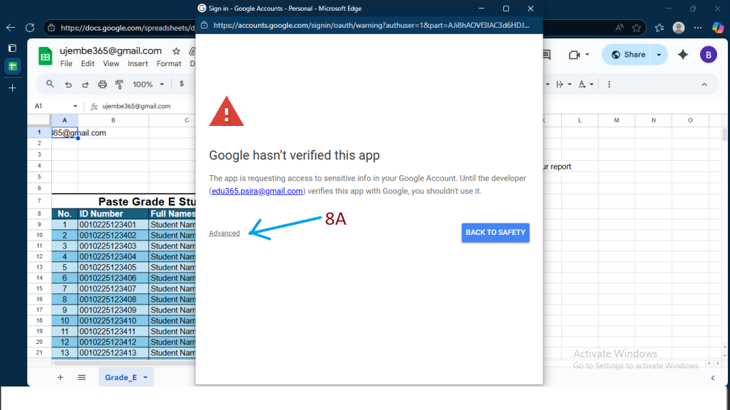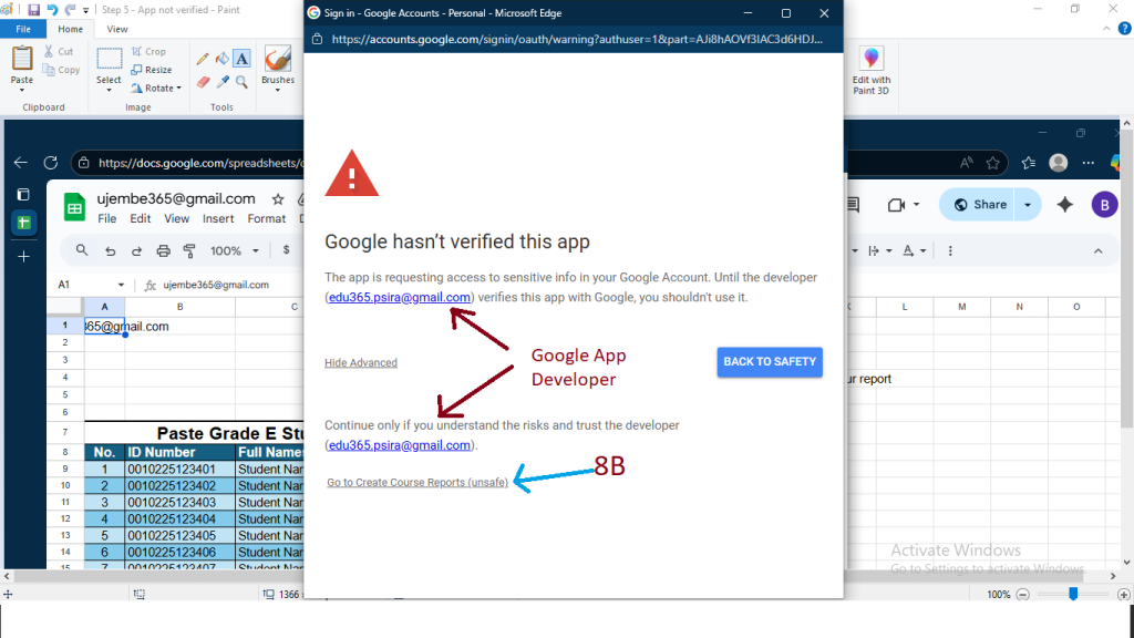 Google here simply confirms that the App has not been verified, and edu365.psira@gmail.com is – Ed365 Google app developer account.